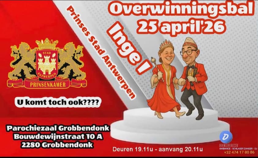 Zaterdag 14 maart 2026 KARNAMOR - CarnavalbalPolyvalente Zaal Stadhuis - Stadsplein 2 - 2640 Mortsel Aanvangstijd: 20:11 uur