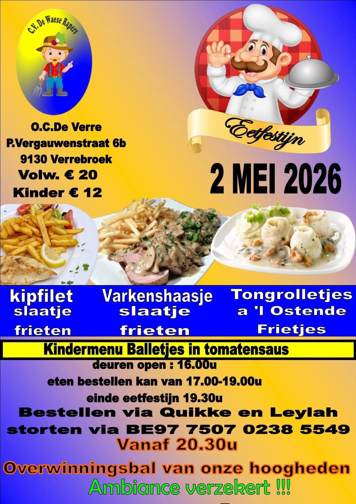 Zondag 31 mei 2026 DE WIT RODE BOERKES Bingo namiddag met BBQ17€ betalen is ingeschreven BE05 9735 1778 0475 Café Trapke op vaardijk 16 2960 Brecht
