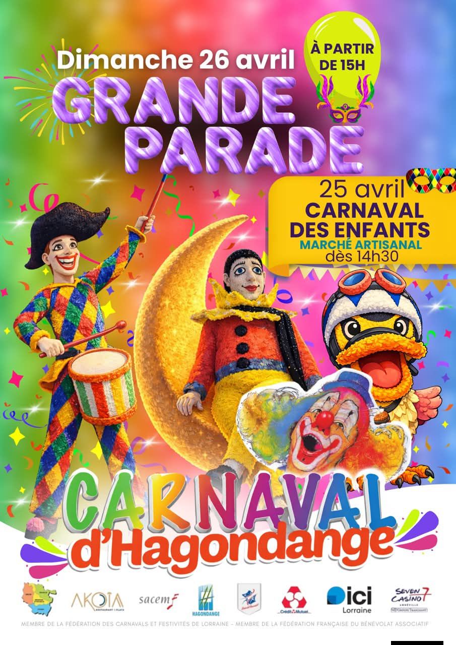 HAGONDANGE CARNAVAL WEEKEND 24 - 25 - 26 - 27 APRIL 2026 C.B. UITSTAP 4 OVERNACHTINGEN PROGRAMA VOLGT |