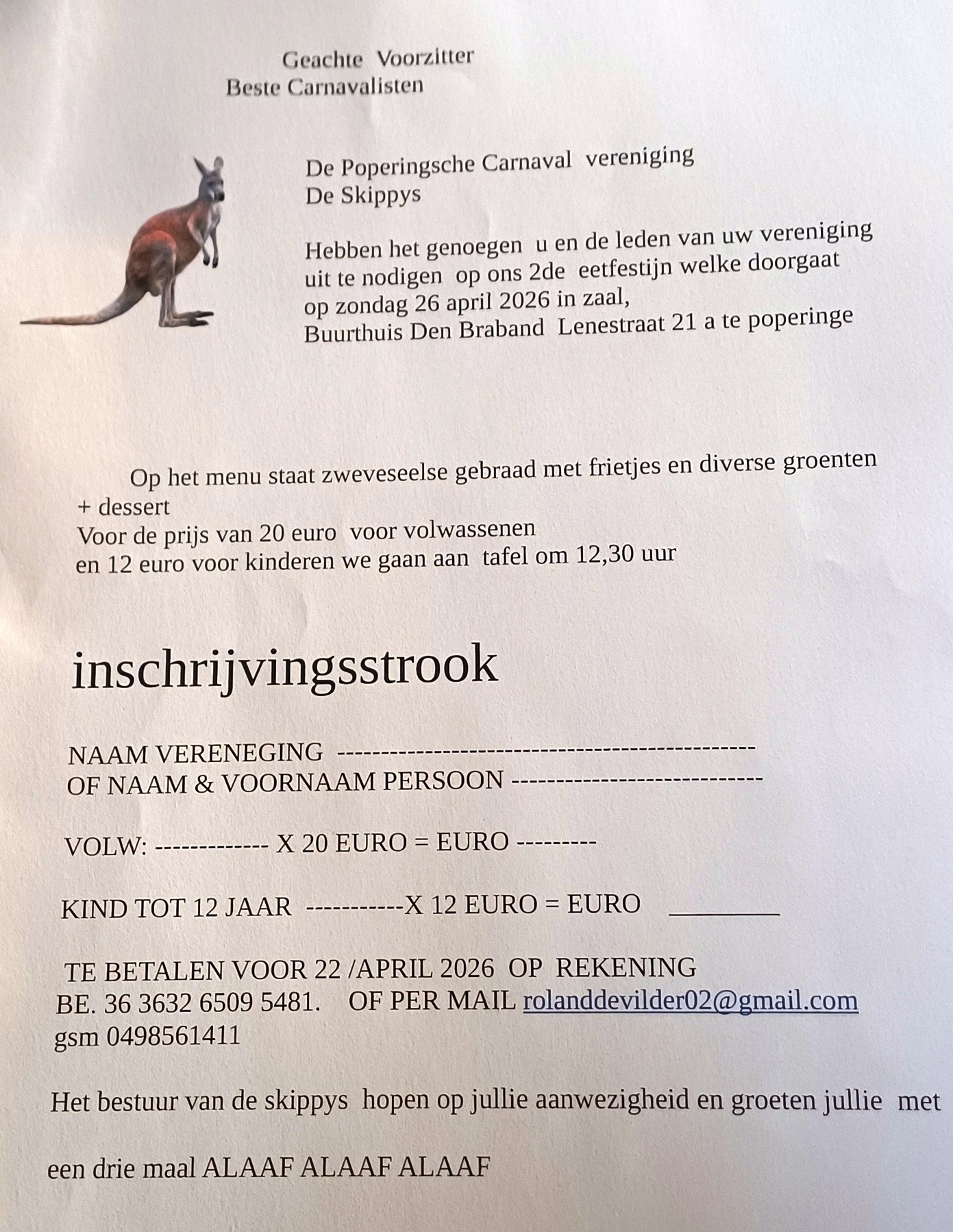 | Geachte leden ,Carnavalisten indien een datum , plaats, of zaal. | |