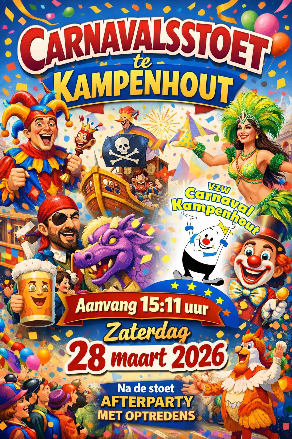 Zondag 29 maart 2026 DE FRUITFRETTERS - Carnavalstoet GeetbetsTent - Dorpstraat 1 - 3450 Geetbets Aanvangstijd: 14:11 uur