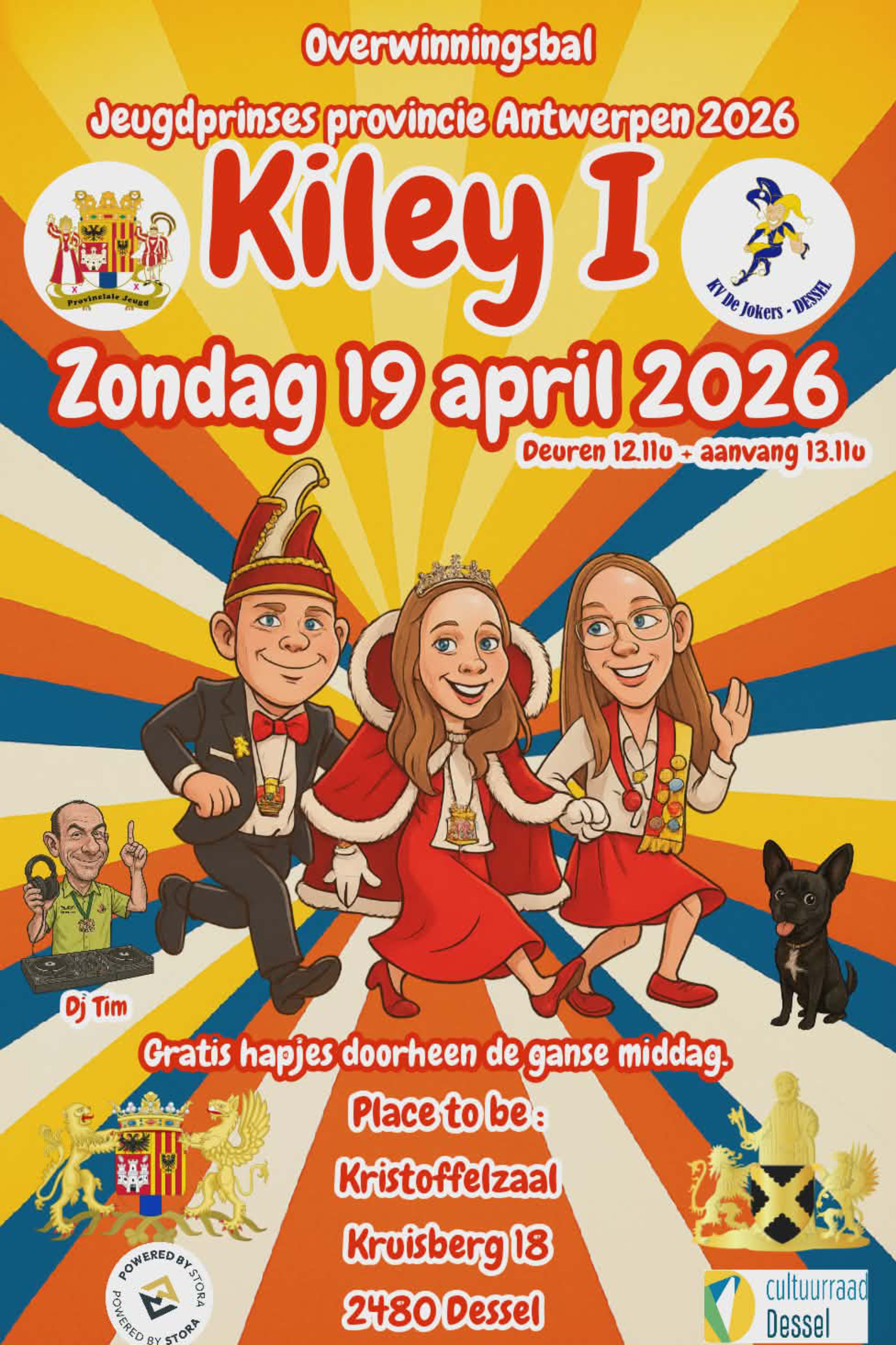 Vrijdag 13 maart 2026 KARNAMOR - Aanstelling Jeugdprins of JeugdprinsesPolyvalente Zaal Stadhuis - Stadsplein 2 - 2640 Mortsel Aanvangstijd: 20:11 uur